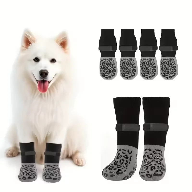 4pcs Waterproof Dog Paw Protectors Anti-Slip Boots with Traction Control Adjustable Socks for Injured Paws Senior Dogs